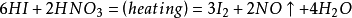 反應(yīng)方程式:4HNO=光照=4NO↑+O2↑+2H2O
